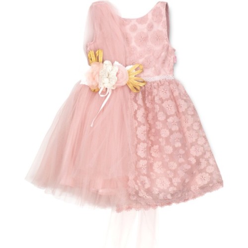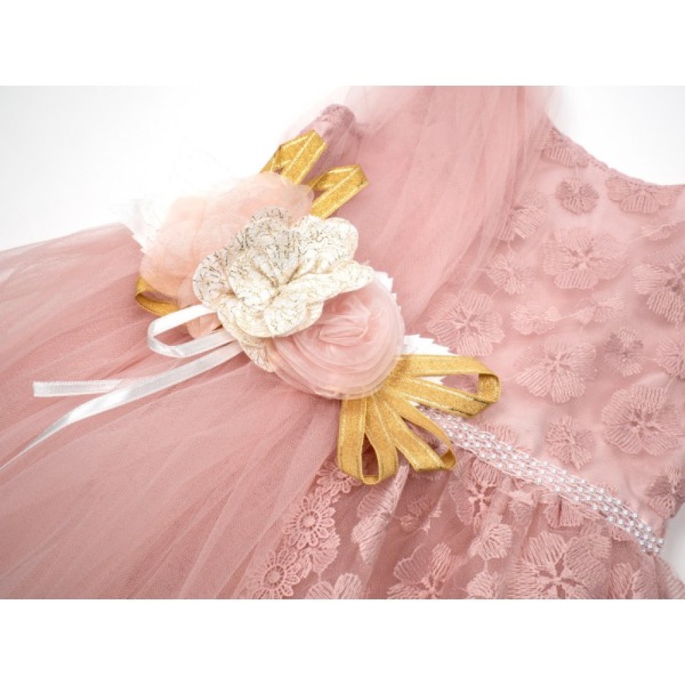 Шикарна ошатна сукня пудрового кольору, з об'ємною спідницею, прикрашена дуже красивим, знімним декором – відмінне вбрання для будь - якого святкового виходу Вашої юної модниці.