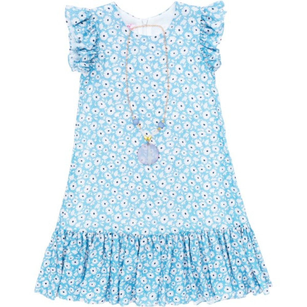 • Елегантна, гарненька легка шифонова сукня блакитного кольору в симпатичні біленькі квіточки з чарівною прикрасою на золотистому ланцюжку для вашої красуні.