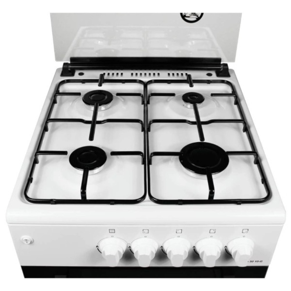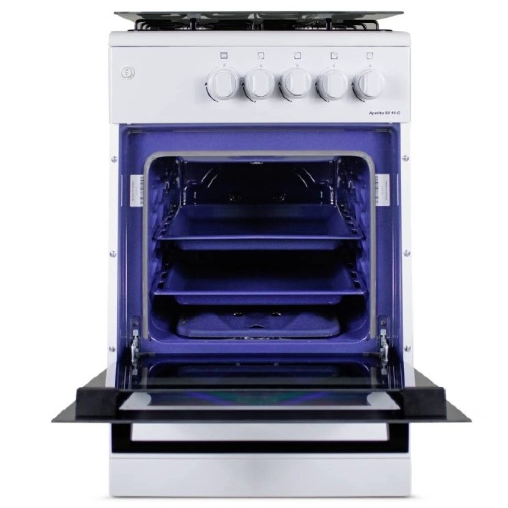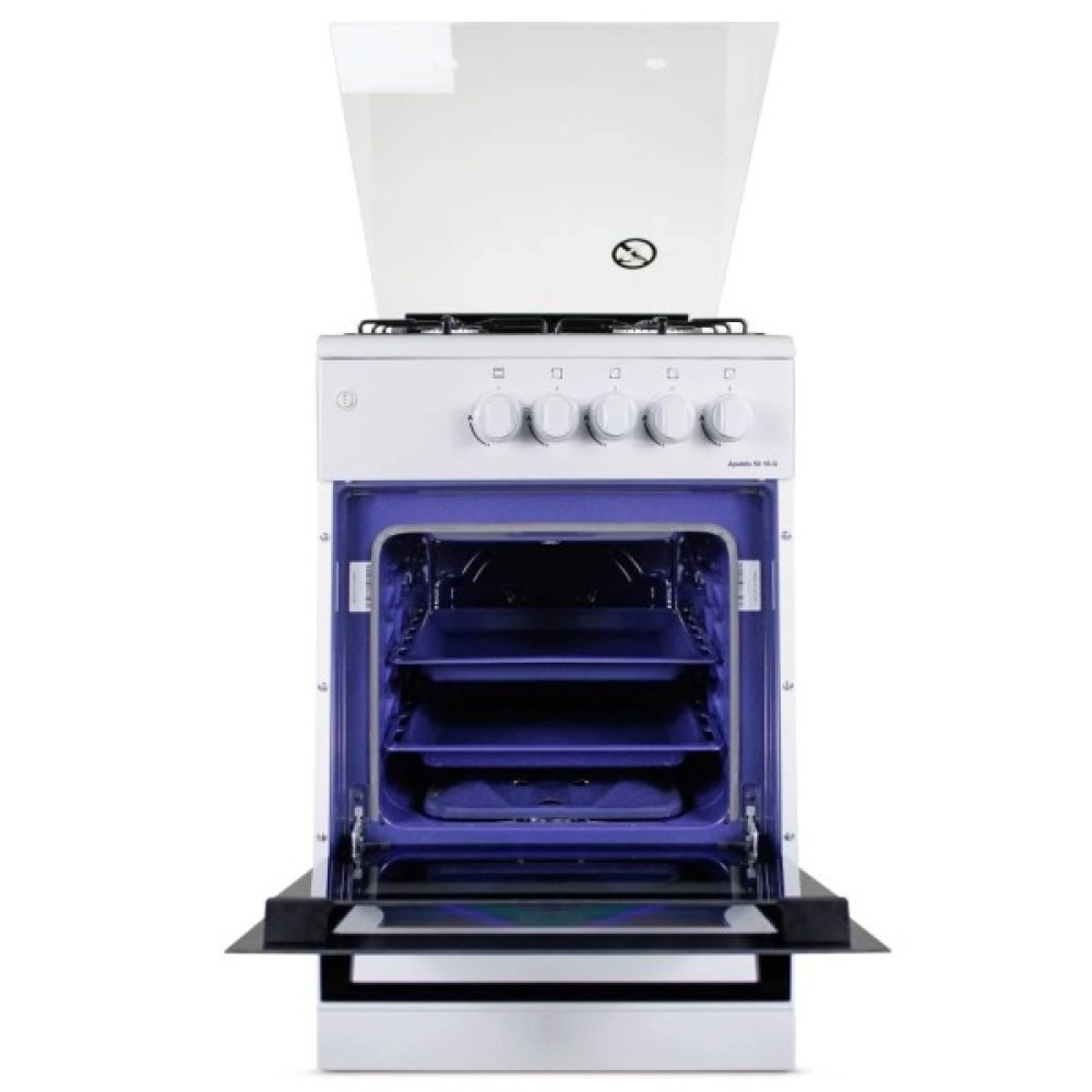 Ця модель оснащена газовою варильною поверхнею, що забезпечує швидке та рівномірне нагрівання. Емальоване покриття варильної поверхні не тільки додає естетичної привабливості, але й полегшує очищення після приготування їжі. Безпека на кухні завжди на першому місці, і ARTEL APETITO 50 10-G White має ряд функцій, що забезпечують безпечне використання: дверцята з подвійним склом, газ-контроль конфорок та газ-контроль духовки.