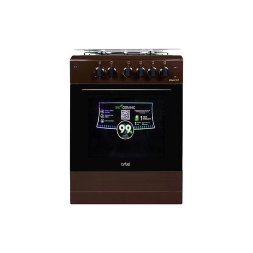Комбінована плита Artel Milagro 10 E крім функціональності може також похвалитися сучасним дизайном. Корпус виконаний з якісних матеріалів, в цікавому коричневому кольорі, завдяки чому апарат відмінно впишеться в кожну кухню. Панель управління складається з механічних перемикачів для контролю конфорок, а для моніторингу процесів в духовці поруч присутні індикатори роботи і розігріву.