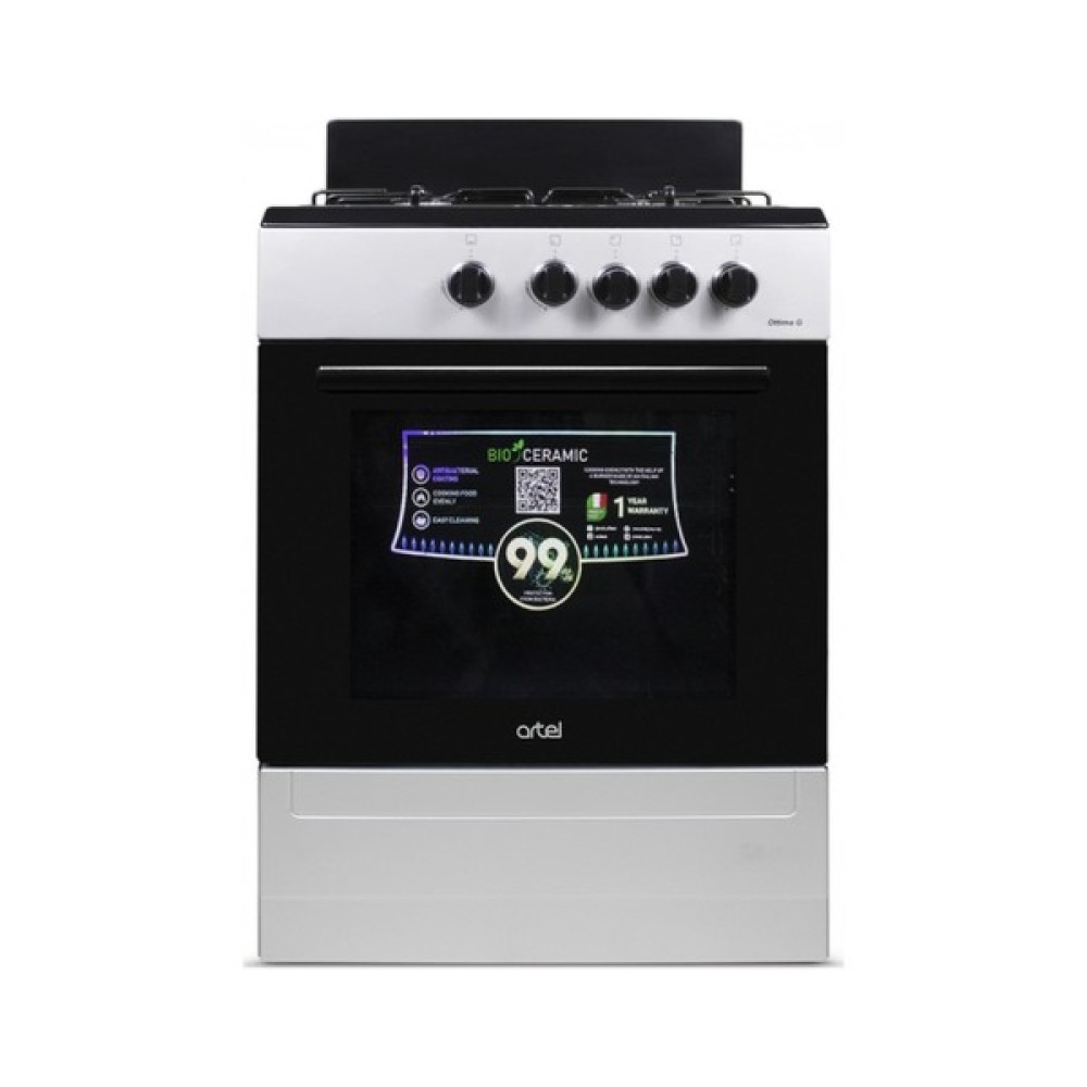 Газова плита ARTEL має габарити 60 х 85 х 60 см. Корпус виконаний в сірому кольорі, тому дана модель гармонійно доповнить практично будь-який сучасний інтер'єр. Управління конфорками і духовкою здійснюється за допомогою поворотних перемикачів. Контролювати процес приготування ласощів і отримати ідеальний результат дозволить вбудований стрілочний термометр.
