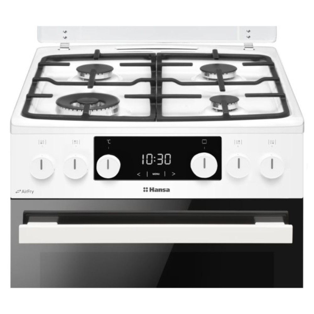 Hansa FCMW58329 – це поєднання елегантного дизайну та розширених можливостей для зручного приготування. Газова варильна панель оснащена 4 конфорками, зокрема потужною WOK-конфоркою, автоматичним запалюванням і чавунними ґратами. Простора 65-літрова електрична духовка має 8 програм, конвекцію та електричний гриль. Каталітична система очищення спрощує догляд, а спеціальне деко AirFry дозволяє готувати без олії.