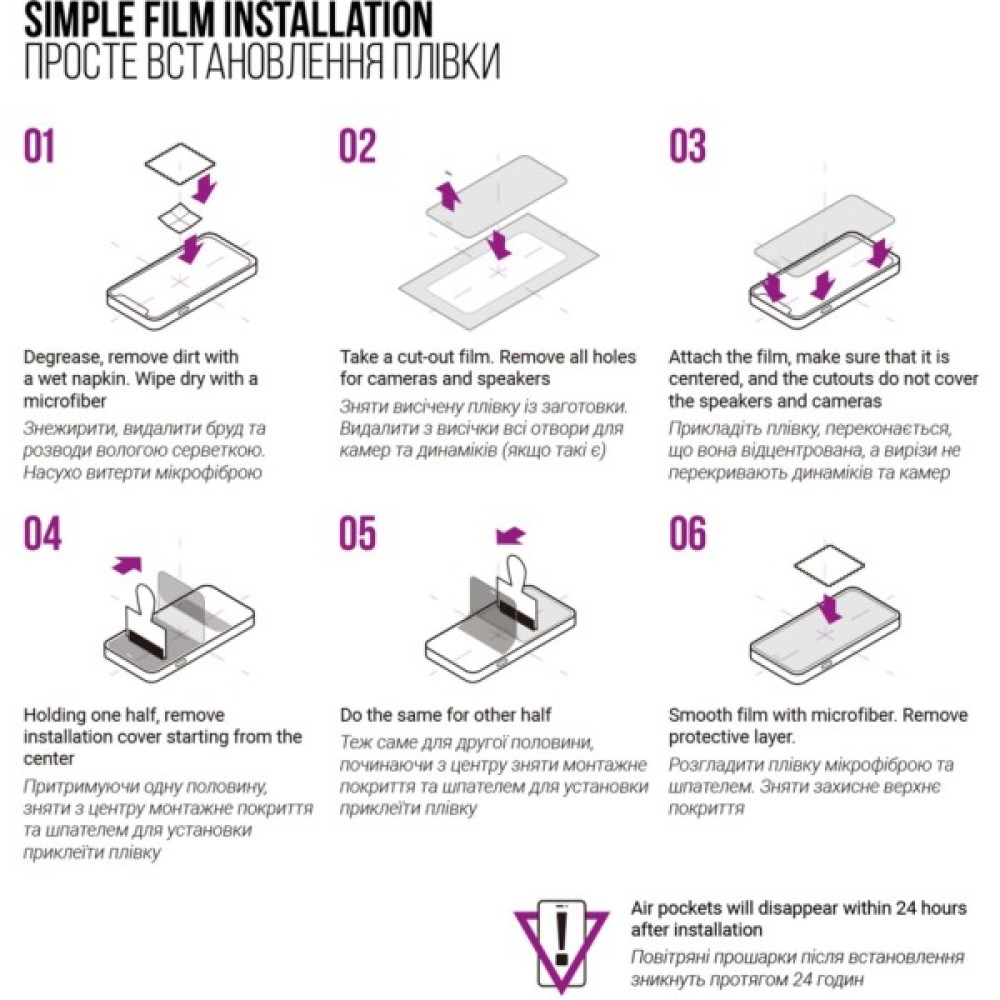 3. Додайте плівку, переконайтеся, що вона відцентрована, а вирізи не перекривають динаміки та камери.