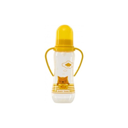 Пляшечка, годування, Baby, Team, із, силіконовою, соскою, і, ручками, 0, 250, мл, Жовта, 1411