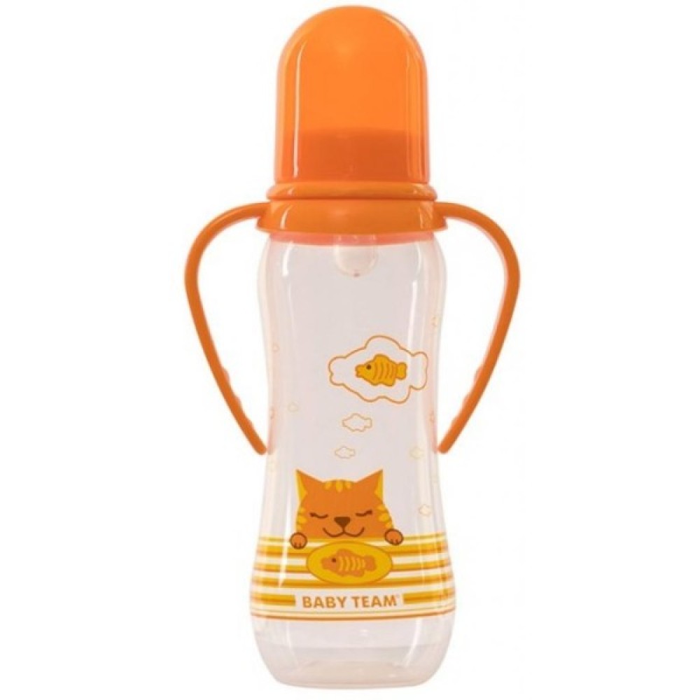 Пляшечка, годування, Baby, Team, з, силіконсоскою, 250мл, 0, помар, 1411оранжевый
