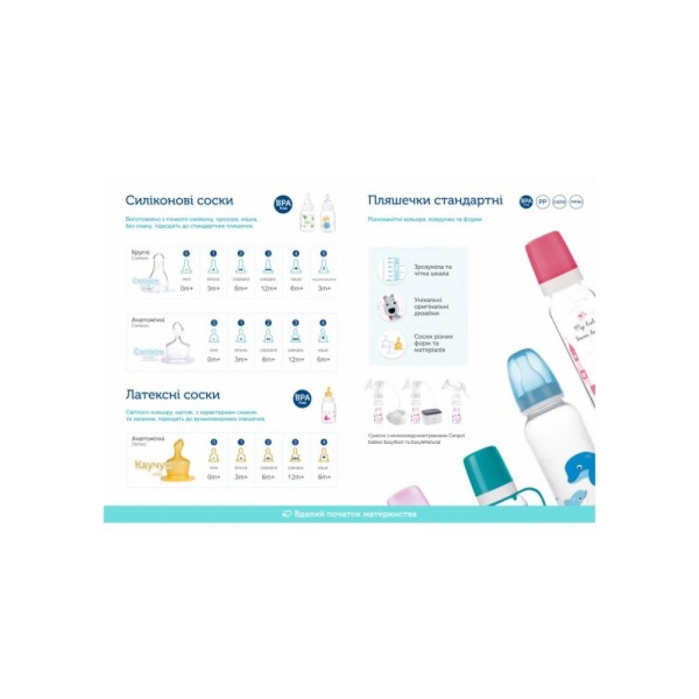 Легку та зручну пляшечку з вузьким шийкою дуже зручно тримати під час годування. Пляшечка поставляється з круглою антиколіковою силіконовою соскою швидкого потоку, герметичним диском, який перетворює пляшечку в контейнер для зберігання/заморожування продуктів харчування, жорсткою кришкою, що закручується, яка не дасть рідині розлитися під час прогулянок.