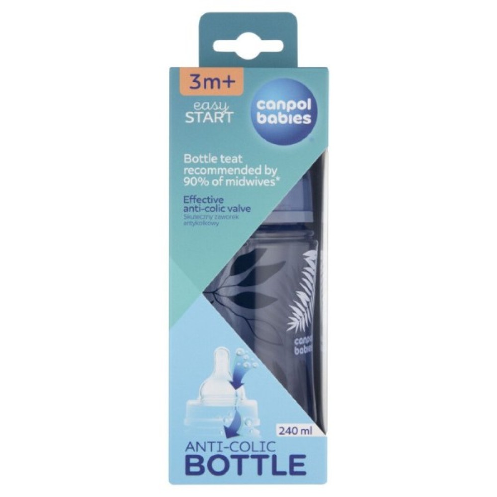 Пляшечка, годування, Canpol, babies, Easystart, GOLD, 240, мл, антикол, з, широк, блакитна, 35240blu