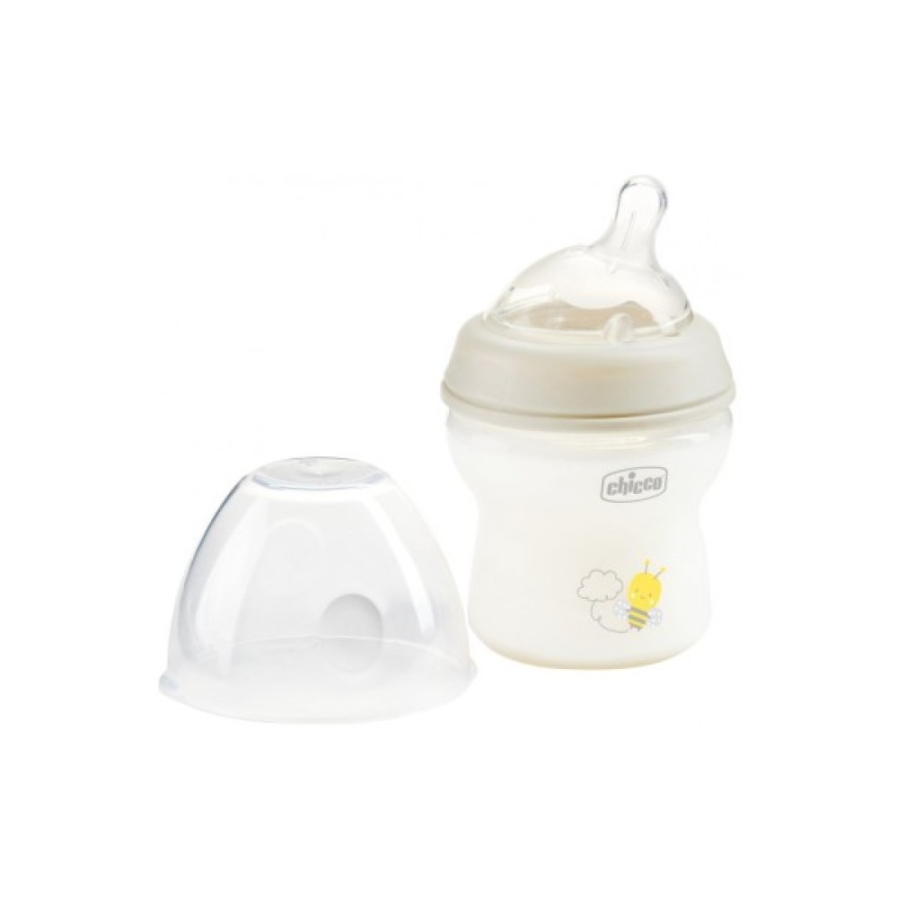 Пластикова пляшка Chicco Natural Feeling з похилою силіконовою соскою, яка завжди наповнена молоком, сприяє імітації природного вигодовування.
