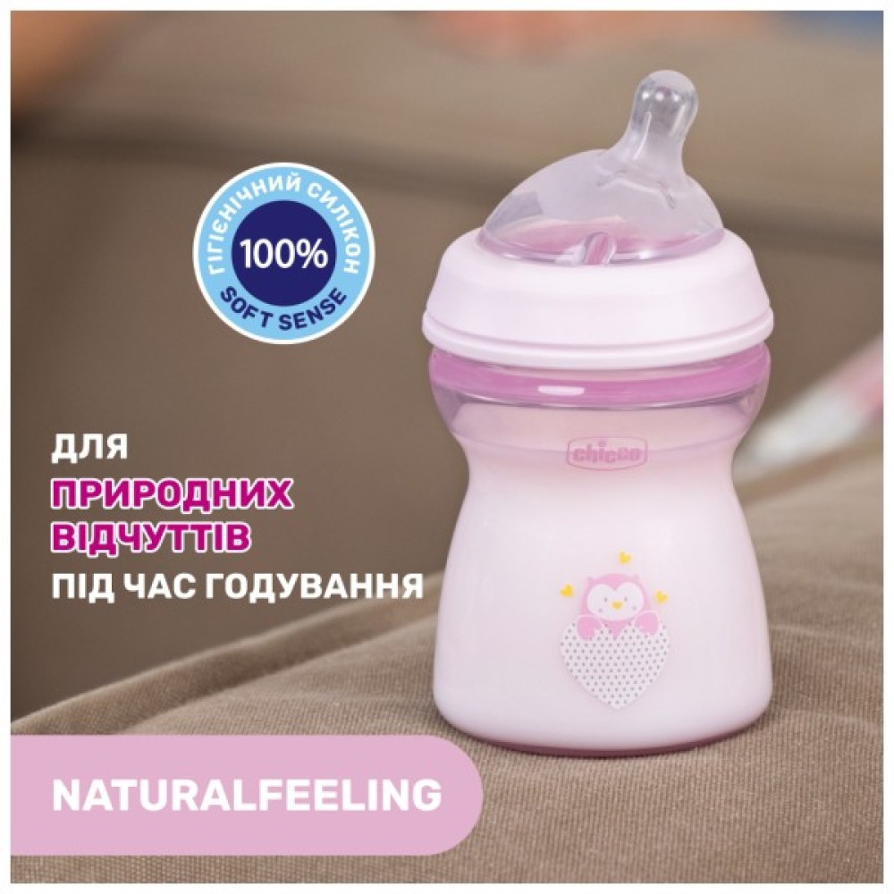 Пляшечка, годування, Chicco, Natural, Feeling, силікон, середній, потік, 250мл, рожева, 8132310