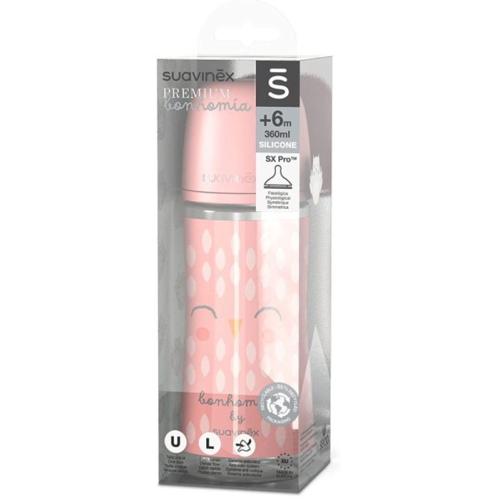 Пляшечка для годування Suavinex Bonhomia, повільний потік, 360 мл, рожева (307837)