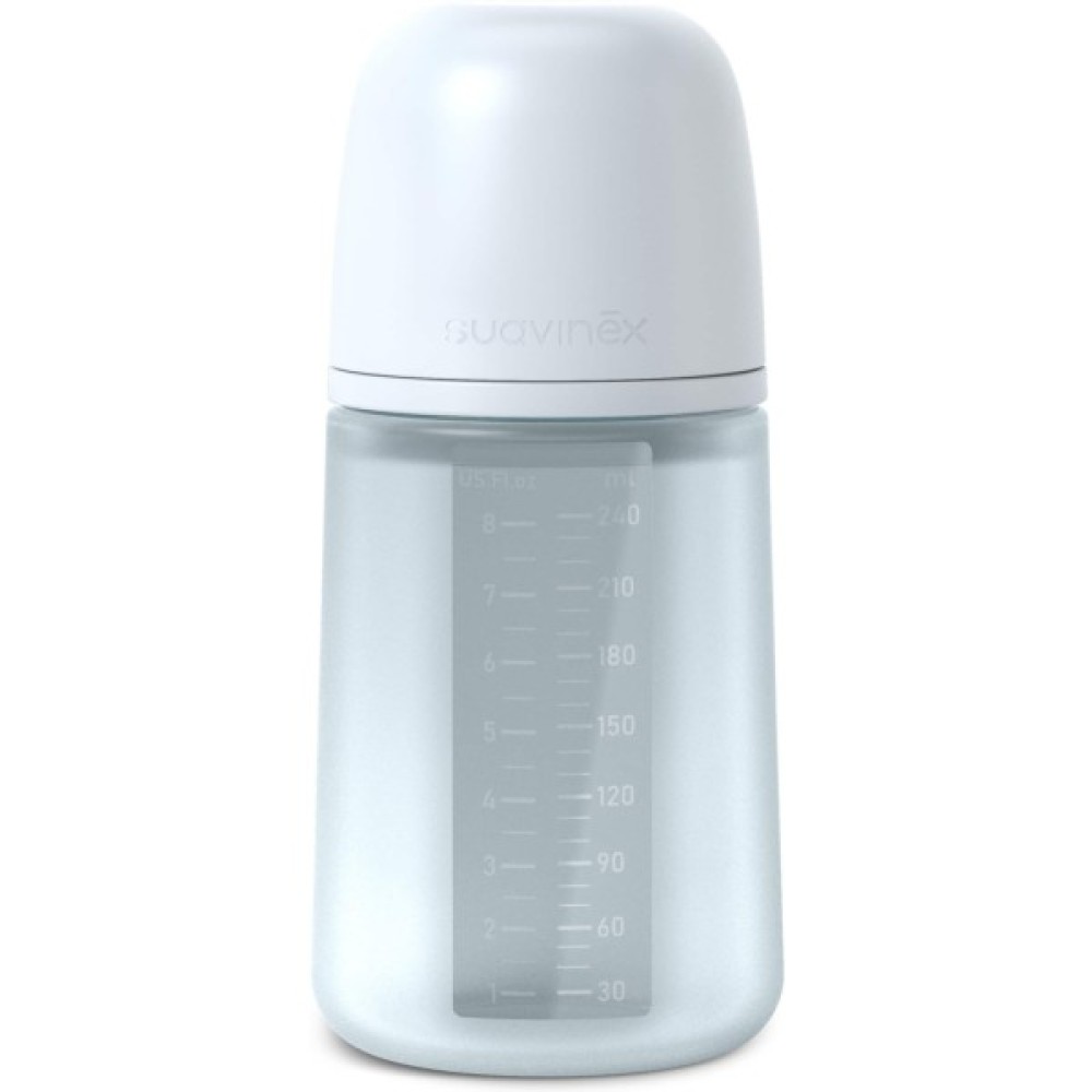 Пляшечка Suavinex призначена для малюків від 3 місяців. Вона зручна для ручок дитини, сприяє розвитку тактильного сприйняття, підходить для води, молока й соків, має антикольковий клапан. Мініатюрна симетрична соска забезпечує природне розташування язика, її відцентрована шийка полегшує годування. Пляшечка сумісна з усіма сосками SX Pro та придатна для миття в посудомийній машині.