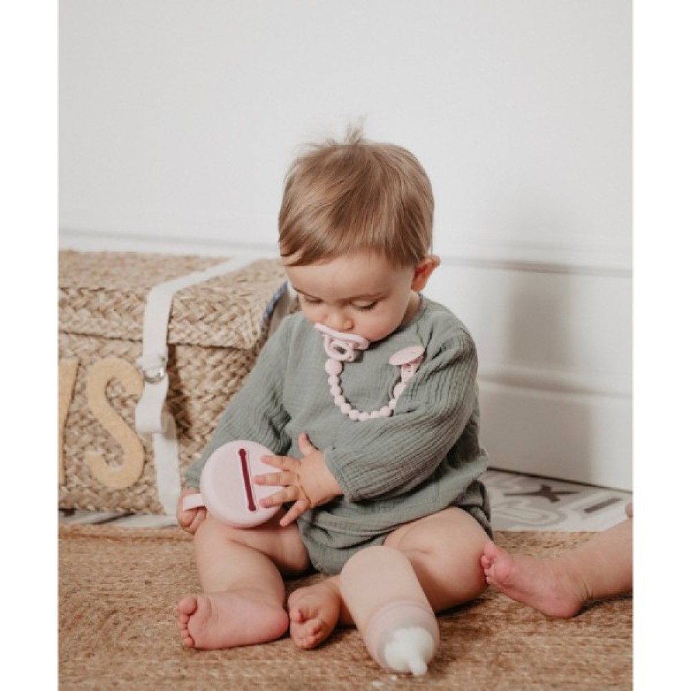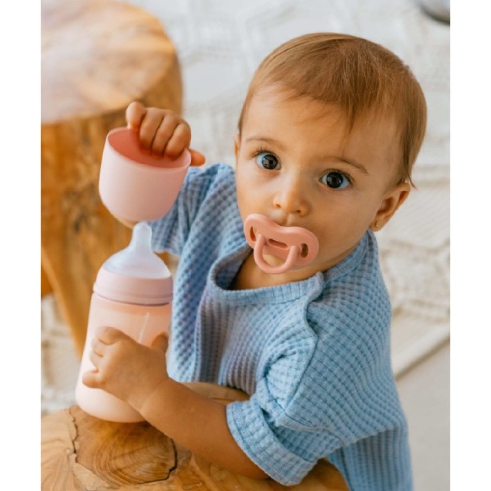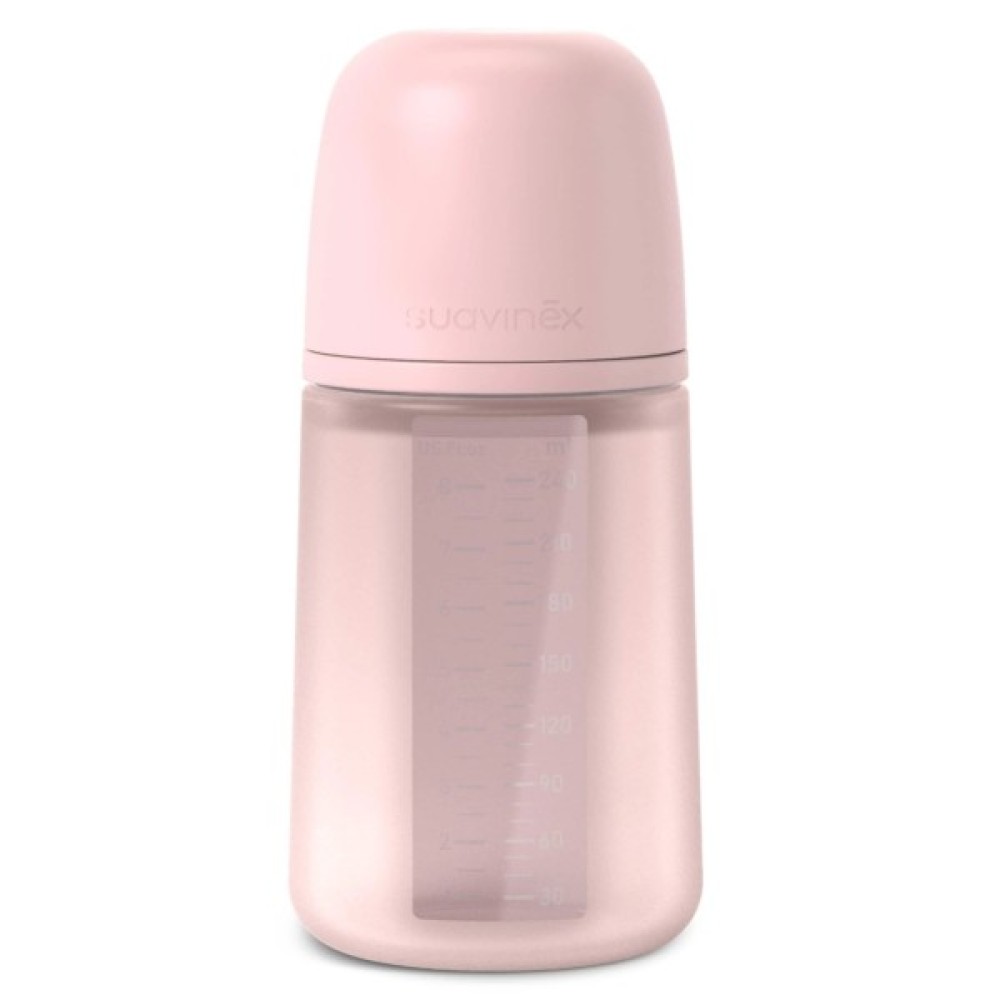 Пляшечка Suavinex призначена для малюків від 3 місяців. Вона зручна для ручок дитини, сприяє розвитку тактильного сприйняття, підходить для води, молока й соків, має антикольковий клапан. Мініатюрна симетрична соска забезпечує природне розташування язика, її відцентрована шийка полегшує годування. Пляшечка сумісна з усіма сосками SX Pro та придатна для миття в посудомийній машині.