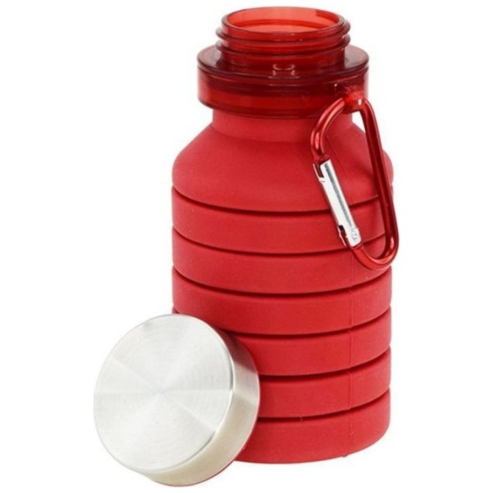 Складна пляшка має металеву пробку з різьбою, яка щільно закручується на горлечку і забезпечує герметичність. За допомогою карабіна пляшку можна прикріпити до рюкзака чи пояса.