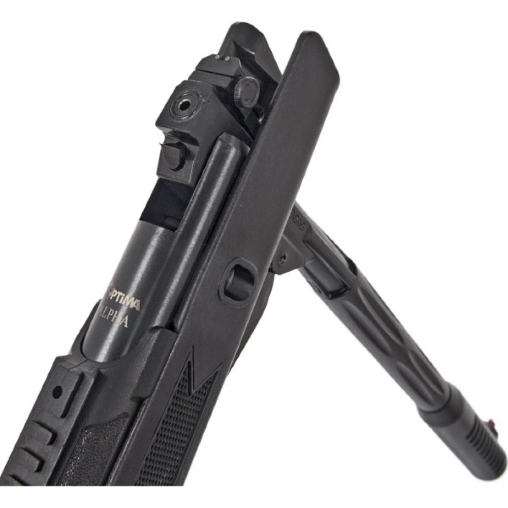 Пневматична гвинтівка Optima Alpha оснащена пружинно-поршневим механізмом, який зводиться переломом ствола. Дана зброя є чи не одною з найкращих пневматичних гвинтівок серед аналогів, вона найкращим чином підійде для навчання стрільбі завдяки хорошій ергономіці, незначній масі, а також відносно меншій потужності в порівнянні з іншими гвинтівками Optima.