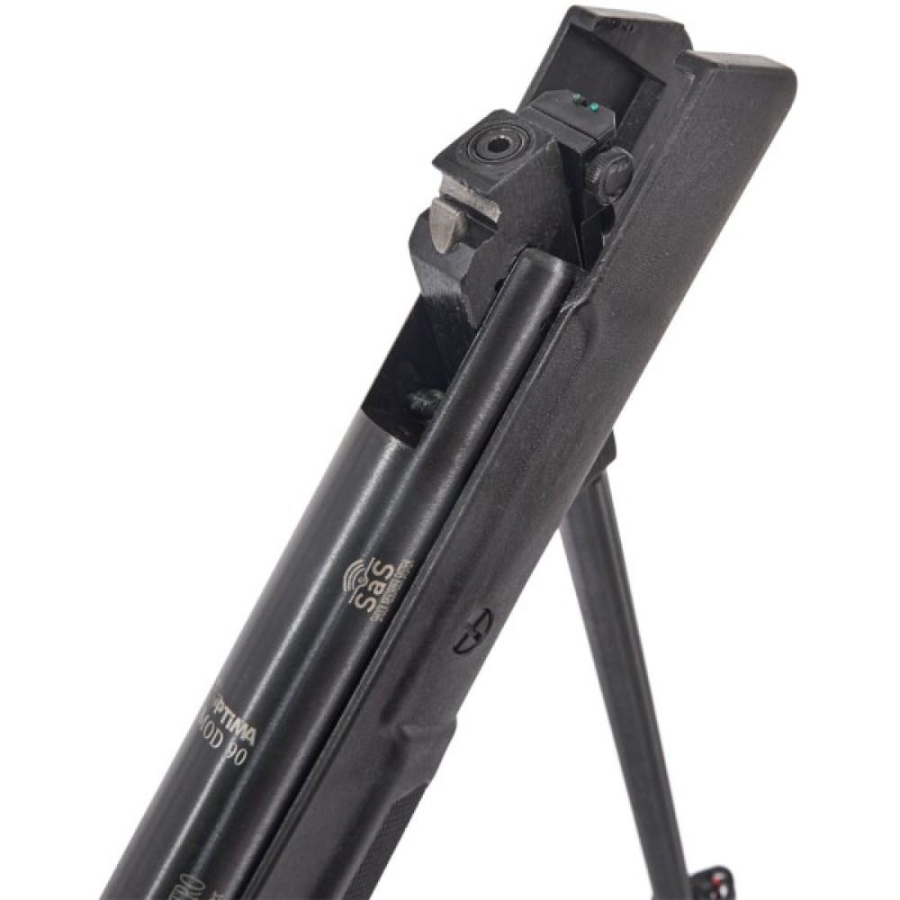 Пневматична гвинтівка Optima Mod.90 є однією з найбюджетніших серед інших моделей Optima. При цьому гвинтівка може похвалитися непоганим показником швидкості вильоту кулі 297 м/с і енергією 24 Дж. Дана модель оснащена пружинно-поршневим механізмом, який зводиться переломом ствола.