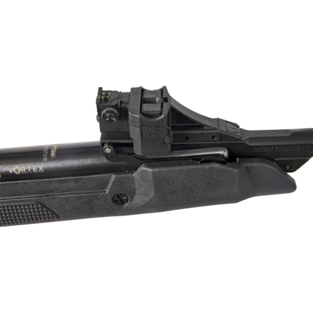 Також передбачені регульовані механічні прицільні пристосування – цілик і складана мушка "TRUGLO" з можливістю регулювання по горизонталі та вертикалі і фібро-оптичними нитками, що забезпечують комфортне прицілювання навіть в умовах недостатньої видимості.Модель комплектується двома знімними магазинами Rapid Performance Mag (RPM): магазином на 12 патронів калібру .177 (4,5 мм).