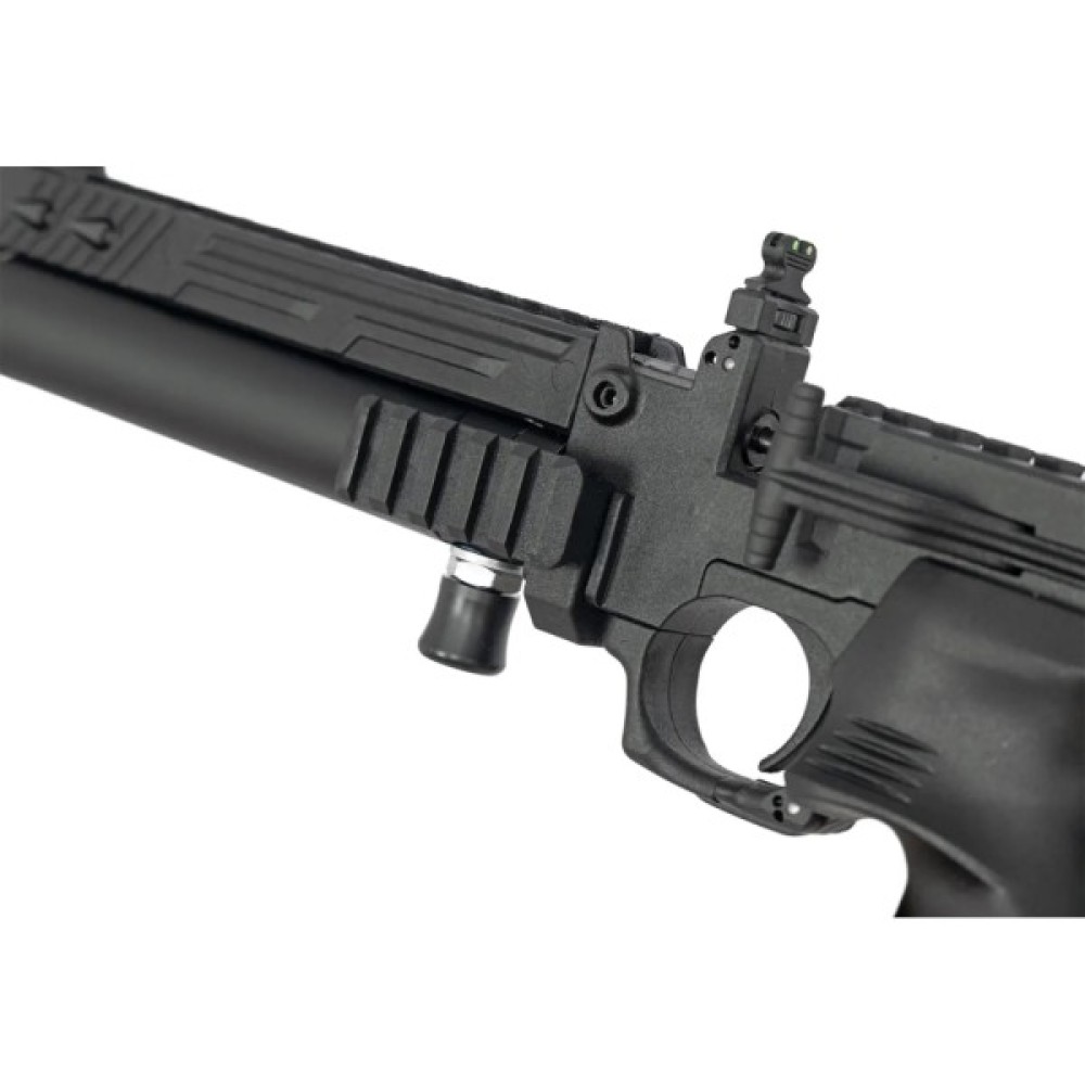 Джерелом енергії пістолета служить підствольний резервуар високого тиску об'ємом 40 см3. Сталевий ствол пістолета довжиною 200 мм здатний забезпечити оптимальну купчастість на дистанції до 25 метрів.