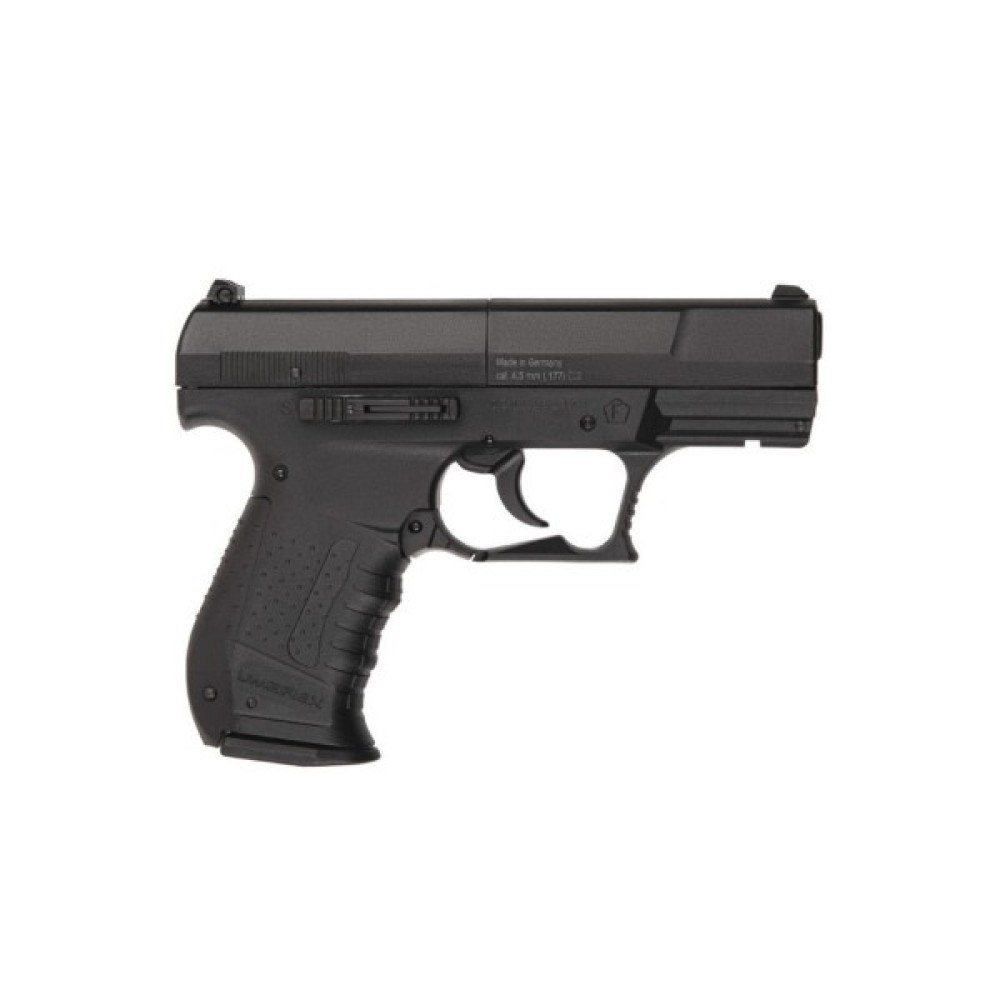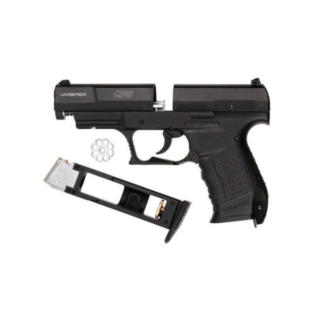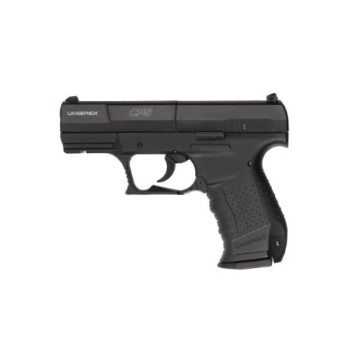 Umarex C · P · S — недорогий пістолет початкового рівня, що працює на вуглекислому газі, але він не знижує точності. Швидкознімний магазин дає змогу легко замінювати капсули з CO₂. Рама має планку Вівера для аксесуарів, як-от ліхтар або лазерний цілевказівник.