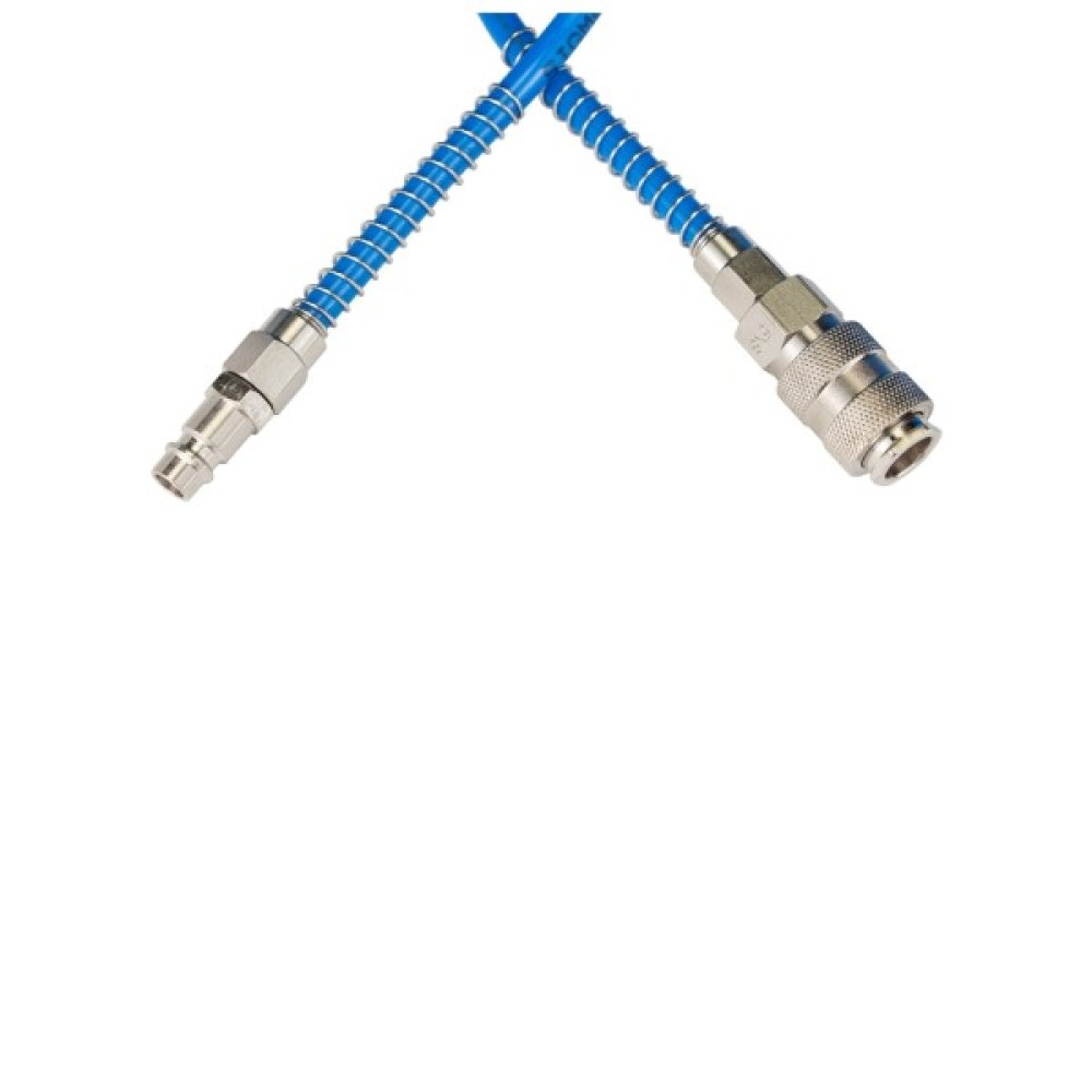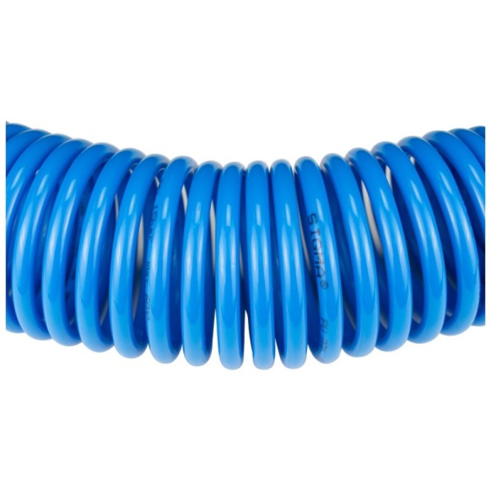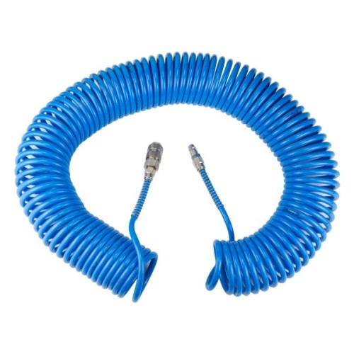 Шланг спіральний поліуретановий (PU) використовується для передачі повітря в пневматичних системах стандартного тиску. Має хорошу стійкість до механічних впливів (перегини, здавлювання, скручування) і швидко відновлює свою первинну форму після зняття механічного впливу. Шланг не схильний до гідролізу і має хорошу стійкість до впливу озону і мікроорганізмів.