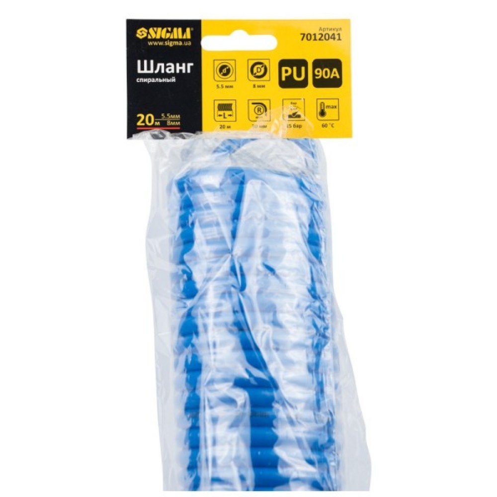 Пневматичний, шланг, Sigma, спіральний, поліуретановий, PU, 20м, 55x8мм, 7012041