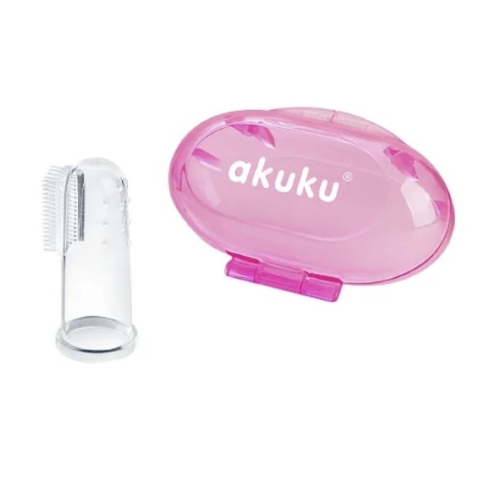 Силіконова зубна щітка на палець Akuku допомагає розвантажити ясна дитини під час прорізування зубів та очищає зуби дитини. Пальцева зубна щітка безпечна і проста у використанні: одягається на вказівний палець дорослого, щоб протирати ясна, перші зубки та навколо рота дитини.