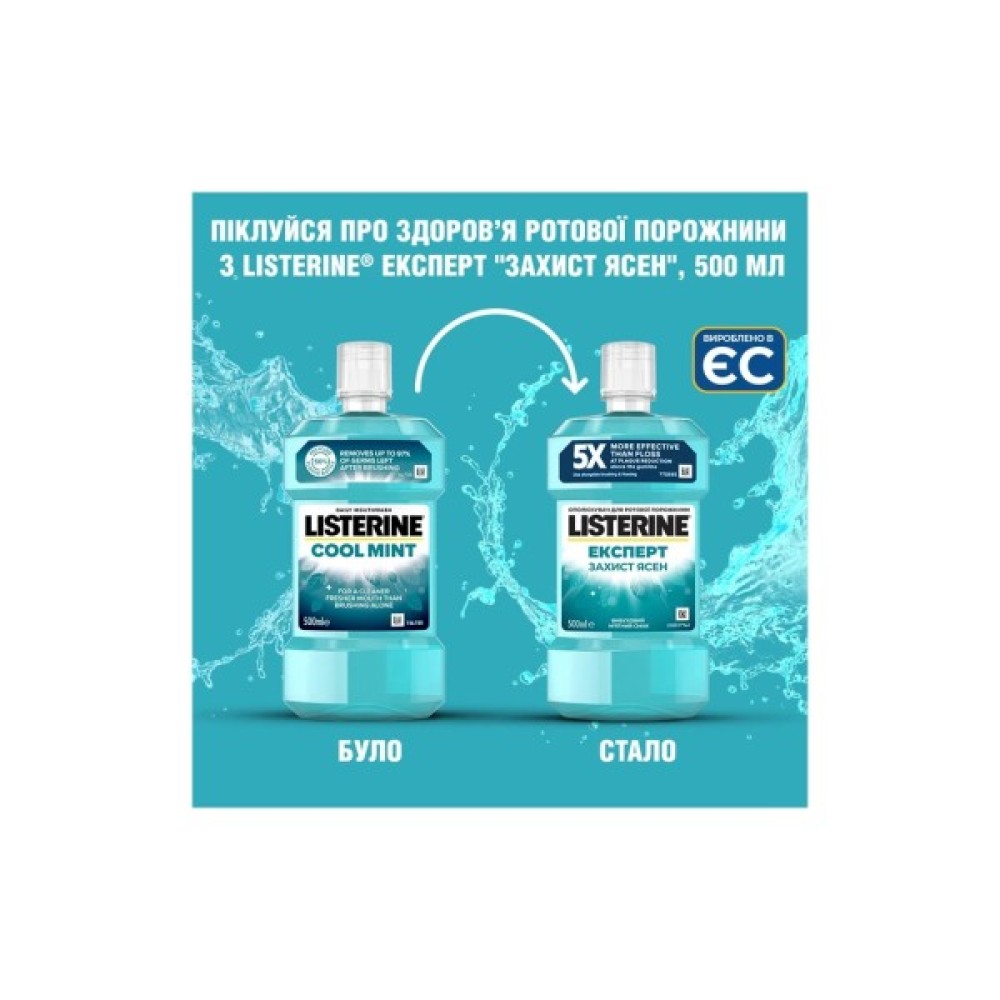 ОПОЛІСКУВАЧ ДЛЯ РОТОВОЇ ПОРОЖНИНИ LISTERINE® СВІЖА М’ЯТА М’ЯКИЙ СМАК. ПРИ ВИКОРИСТАННІ ДВІЧІ НА ДЕНЬ ЗАВДЯКИ ВМІСТУ ЕФІРНИХ ОЛІЙ І М’ЯКОМУ М’ЯТНОМУ СМАКУ ПОКРАЩУЄ ЩОДЕННИЙ ДОГЛЯД ЗА РОТОВОЮ ПОРОЖНИНОЮ: