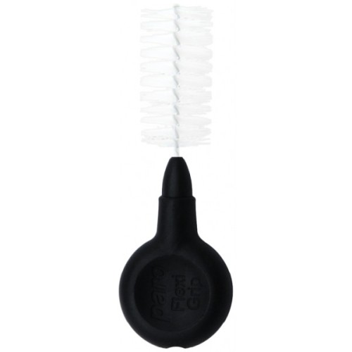 Міжзубні щітки paro Flexi grip готові до застосування. М'яка, кругла, зручна гумова ручка дає змогу тримати її двома пальцями та спрощує уведення йоржика в міжзубні проміжки. Гнучка ручка приємна на дотик. paro Flexi grip також дуже популярні для очищення брекет-систем. Усі paro Flexi grip міжзубні щітки мають захисне пластикове покриття стрижня. paro Flexi grip, хх-великі, чорні, циліндричні, Ø щітки 11.5 мм, стрижня 1.3 мм, Ø оброблюваного отвору 3.1 мм