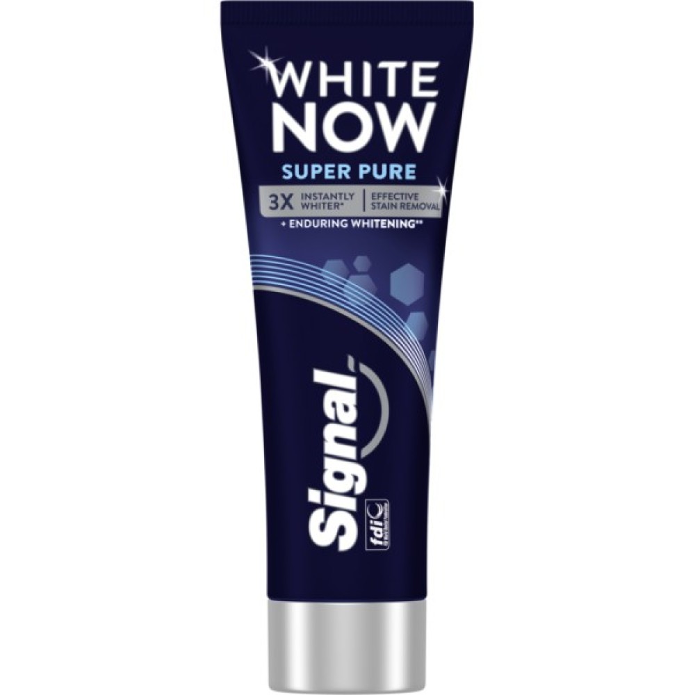 Зубна паста Signal Миттєва білизна Суперчистота 75 мл (8710908135835/8720181327179) — це надійний вибір для щоденного догляду за зубами. Розроблена спеціально для відбілювання, вона ефективно усуває наліт і жовтизну, забезпечуючи зубам яскравий блиск та надійний захист від карієсу.