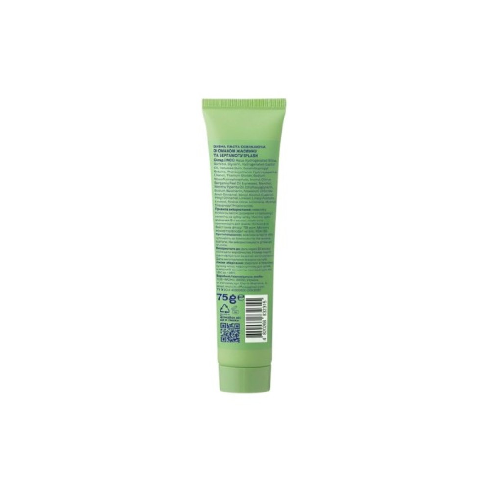 Зубна паста Splash Освіжальна зі смаком жасмину та бергамоту — це відмінний вибір для щоденного догляду, що приносить новизну та свіжість у рутину. Цей продукт перешкоджає утворенню зубного нальоту та ефективно запобігає карієсу, забезпечуючи тим самим здоров'я вашої усмішки.