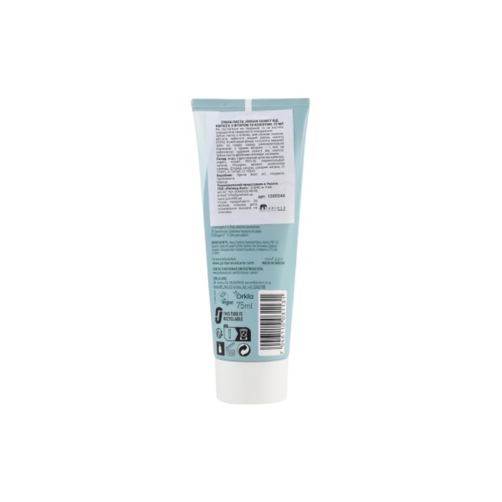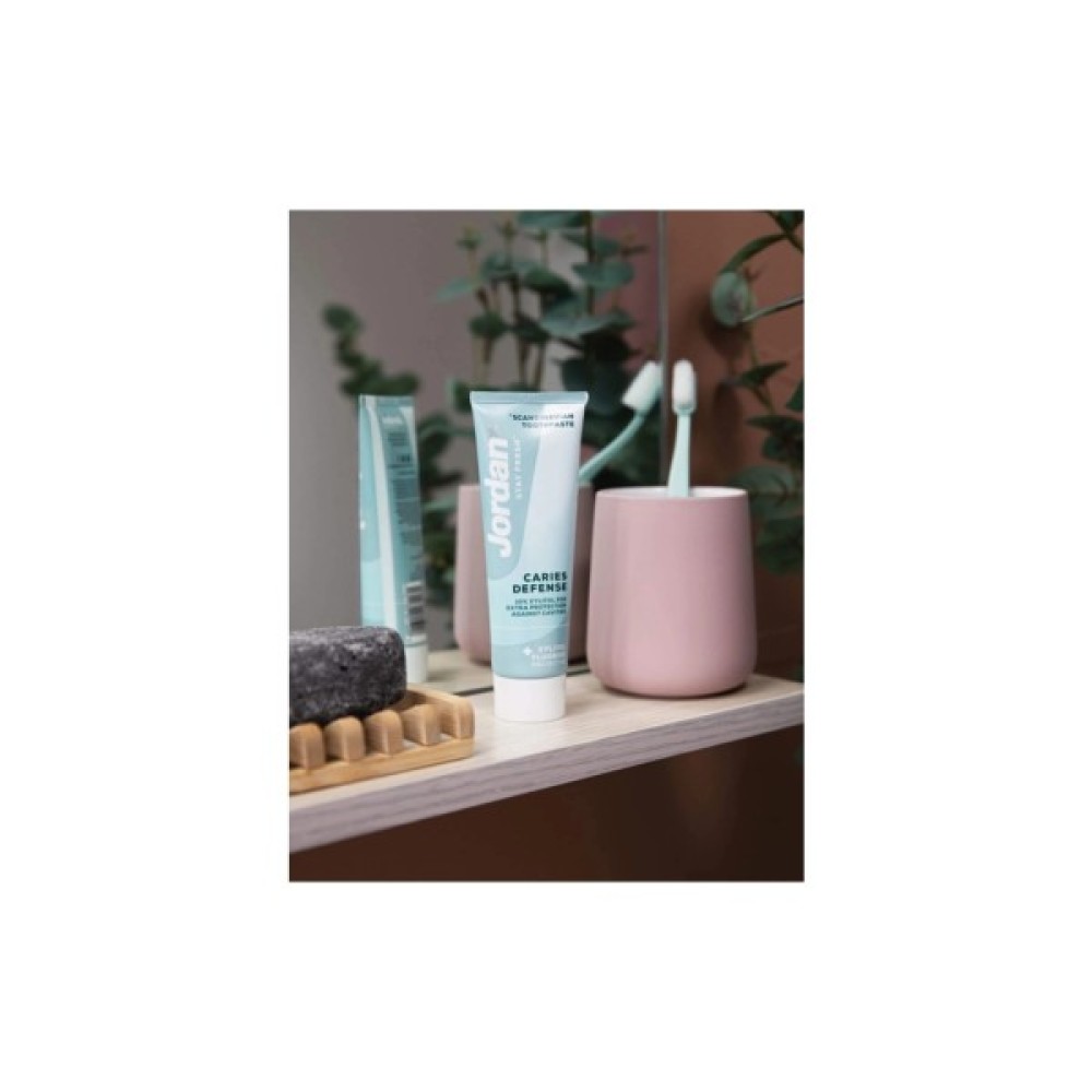 Зубна паста Jordan Stay Fresh Caries Defense - надійний вибір для щоденного догляду за ротовою порожниною. Її спеціальна формула з ксилітом і фторидом натрію не лише ефективно захищає від карієсу та забезпечує свіже дихання, але й перешкоджає утворенню зубного нальоту. Завдяки м'якій дії, паста ідеальна для чутливих ясен і забезпечує комплексний захист, зміцнюючи зубну емаль. Її легка текстура проникає у важкодоступні міжзубні проміжки, даруючи чистоту та комфорт. Відчуйте сяйво вашої усмішки з цим мас-маркет продуктом, що дарує приємний м'ятний смак протягом усього дня.