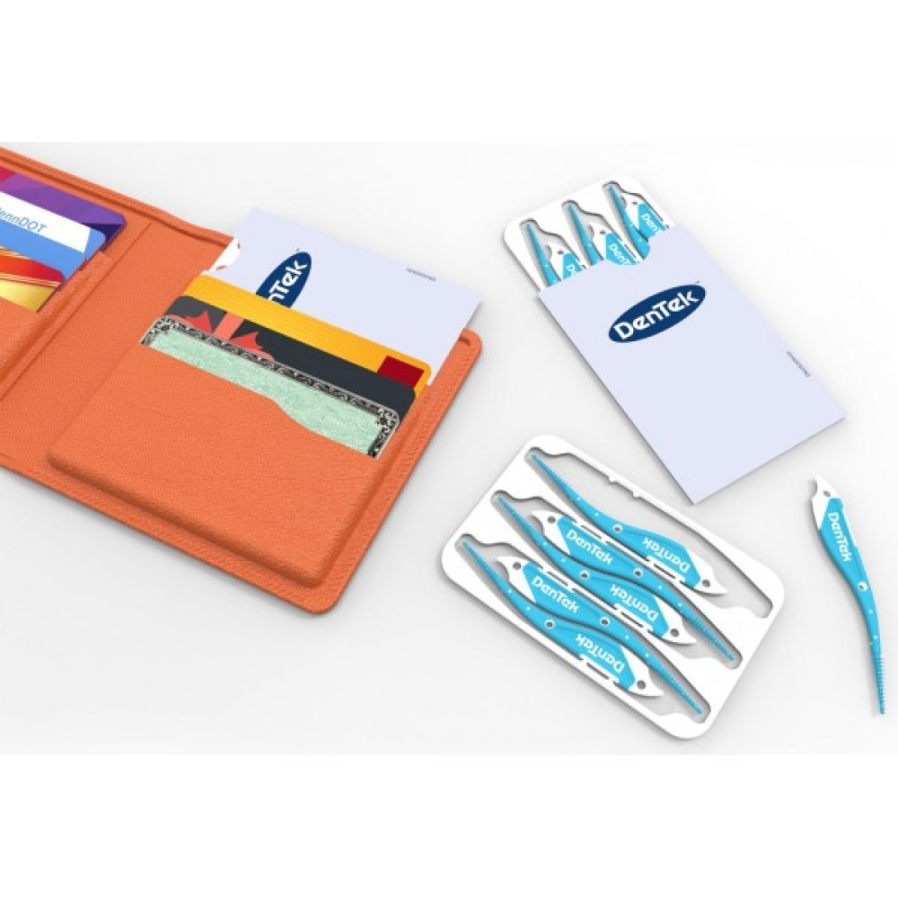 - Ідеально підходить для використання в дорожніх умовах завдяки унікальному дизайну паковання у формі картки, зубочистки легко поміщаються в кишені, гаманці, портмоне, бардачку автомобіля або дорожню сумку. Тепер у Вас немає потреби носити із собою об'ємні футляри-паковання.