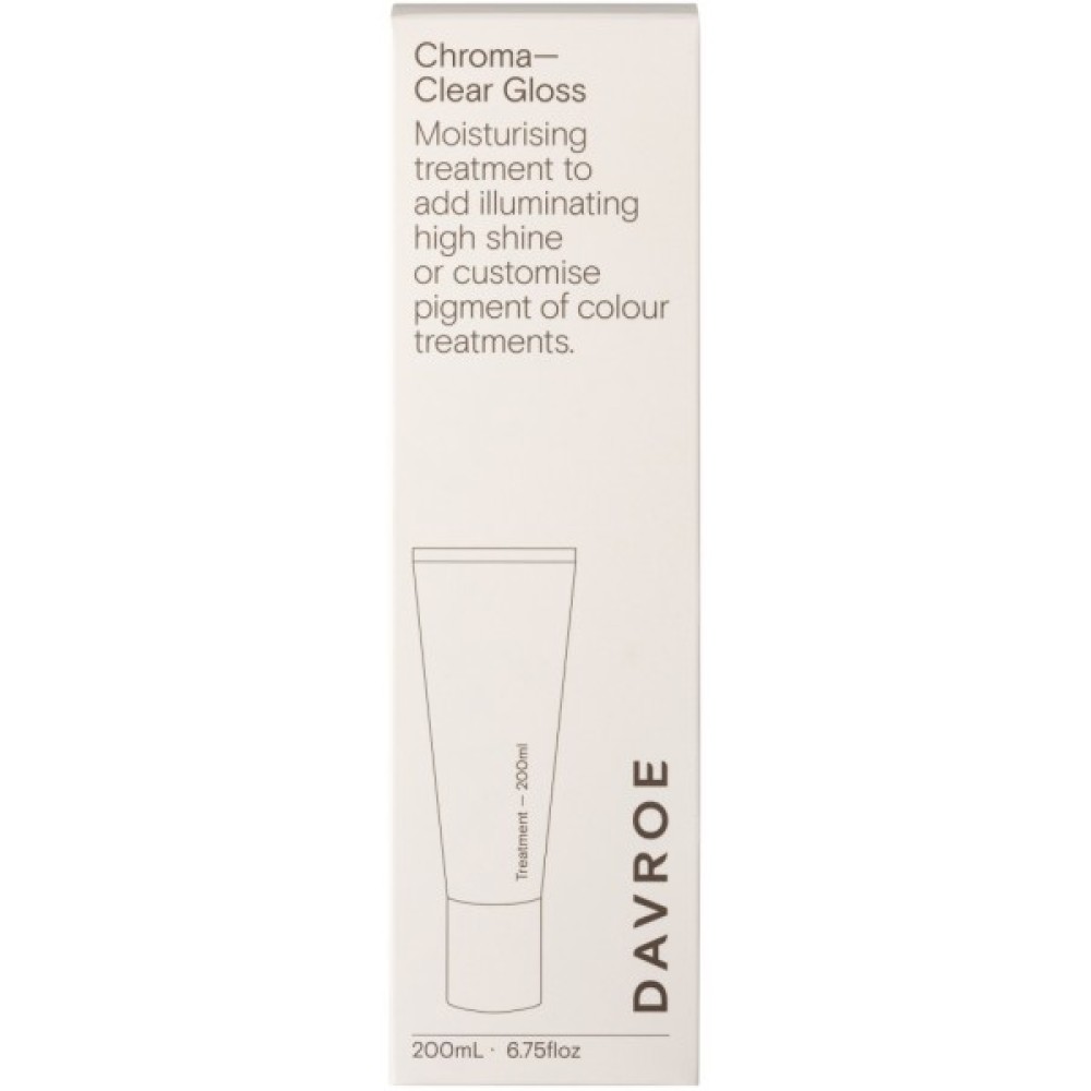 Davroe Chroma Clear Gloss - це зволожуюча процедура для додання яскравого блиску волоссю. Збагачений олією примули вечірньої, Clear Gloss Chroma додає блиску, активно розгладжує, розплутує та кондиціонує волосся всіх типів для здорового вигляду. Засіб можна використовувати як окремо, щоб надати блиску волоссю, так і змішувати з вашою улюбленою фарбою Davroe Chroma Color , щоб розбавити інтенсивність, створивши ідеальний пастельний відтінок.
