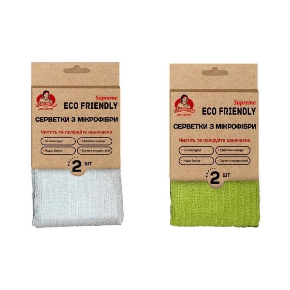 Серветки, прибирання, Помічниця, Eco, Friendly, Supreme, Універсальні, з, мікрофібри, 30, х, 30, см, 2, шт, 4820212002274