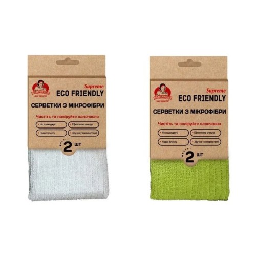 Серветки для прибирання Помічниця Eco Friendly Supreme Універсальні з мікрофібри 30 х 30 см 2 шт. (4820212002274)
