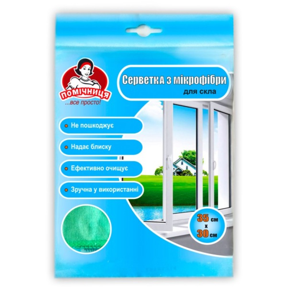 Серветки для прибирання Помічниця З мікрофібри Для скла 35 х 30 см 1 шт. (4820164965771)