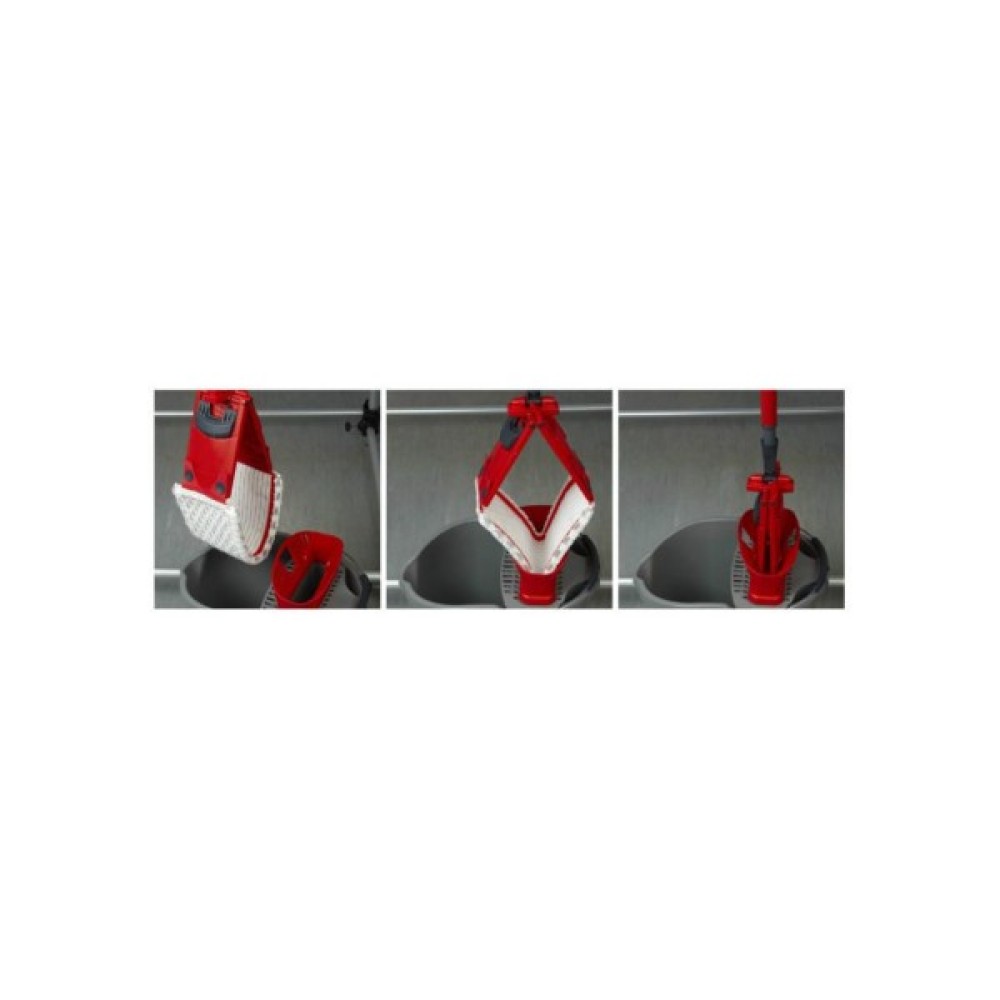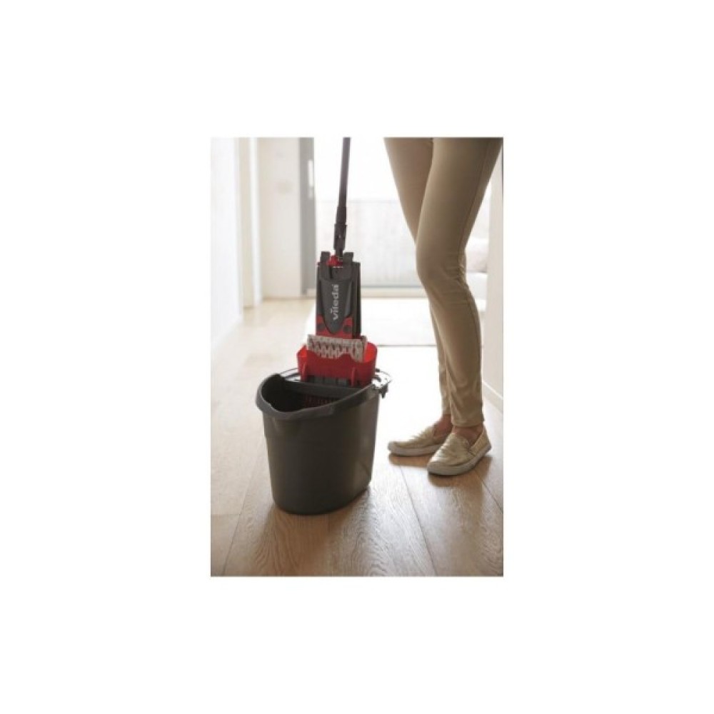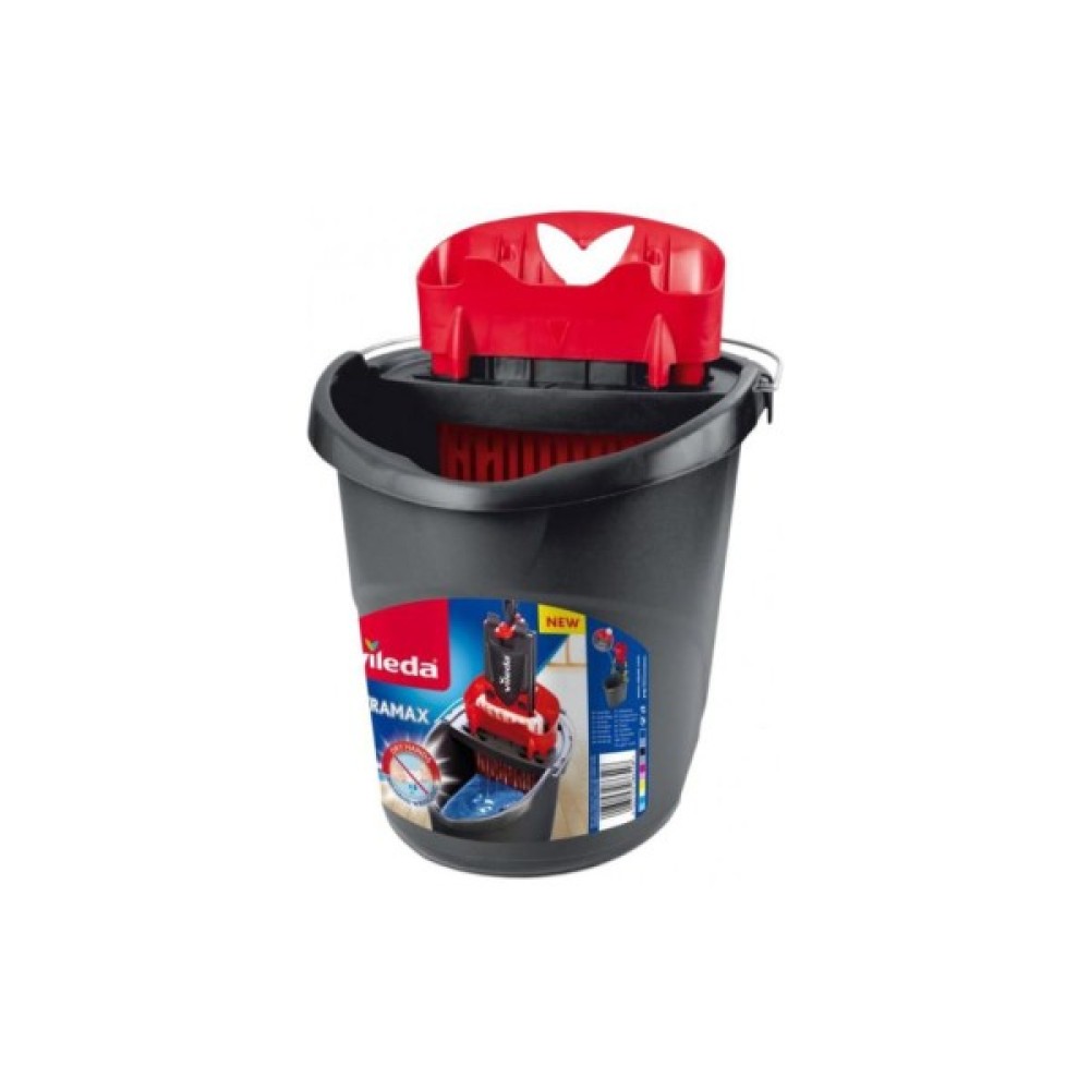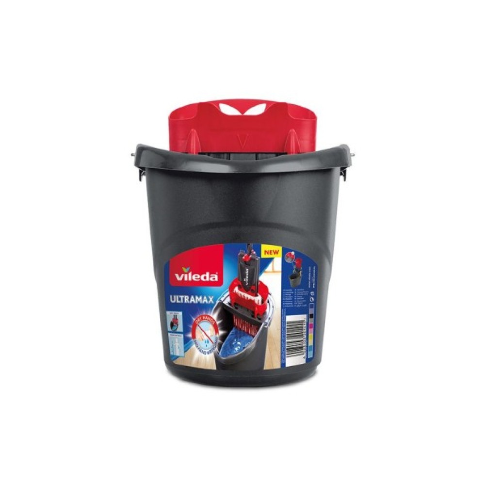 Відро Vileda UltraMax оснащено знімним пластиковим віджиманням і призначене для швабр Vileda UltraMax і Vileda UltraMat XL. 10 літрове овальне відро виготовлено з міцного пластику, має металеву ручку, зручний носик і виїмку під руку для зливу брудної води, а також шкалу поділок для дозування води і миючих засобів.