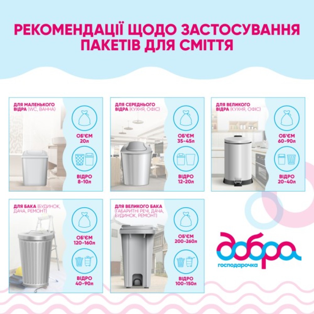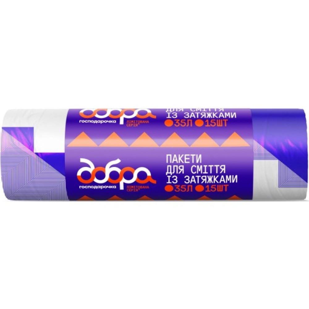Працюючи над цією колекцією, ми звернулися до української вибійки – давнього мистецтва оздоблення тканин, ця техніка прийшла до нас ще з XVII століття й була популярною серед українських майстрів та майстринь, які за допомогою різьблених дерев'яних дощечок наносили орнаменти на текстиль. Зручні пакети для сміття з затяжками Добра господарочка з колекції Українська вибійка відразу привертають уваги своїм унікальним дизайном з витонченими орнаментами, який робить їх справжньою окрасою кухні. Вони міцні та зручні – витримують навантаження, не рвуться, а завдяки затяжці їх легко зав’язувати та переносити. Пакети виготовляються з якісного поліетилену високої густини із використанням 70 % вторинної сировини. В рулоні 15 пакетів об’ємом 35 л.