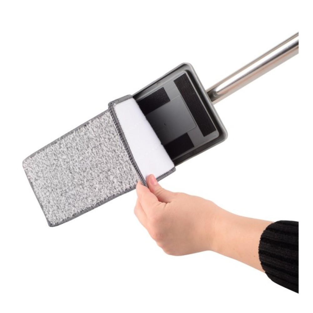 • Завдяки оптимальному розміру та рухливій пластині швабра легко маневрує навколо меблів і стін.