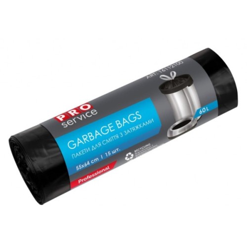 Пакети PRO service 60 л із затяжками — зручні у використанні, затяжки запобігають випаданню сміття.