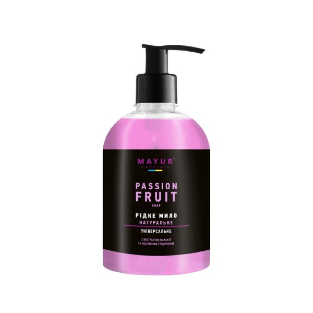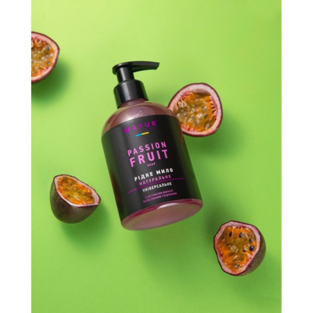 Насолоджуйся тропічним ароматом натурального рідкого мила Mayur з екстрактом п'янкої маракуї, виготовленого з натуральної, якісної, органічної сировини.