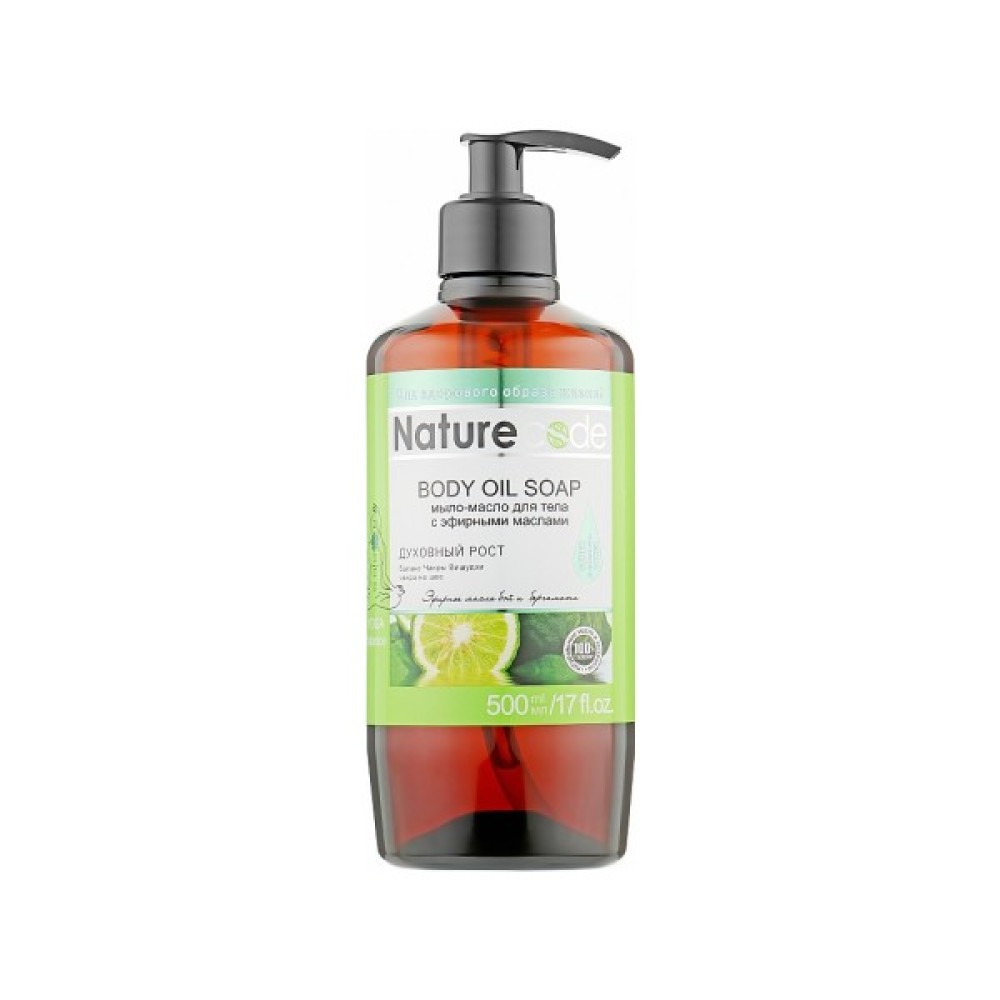 Мило-олія для тіла «Духовний ріст» від Nature Code відновлює тонус шкіри і забезпечує позитивний вплив на чакру Вішудхи, що знаходиться на шиї. Засіб сприяє ретельному очищенню шкірного покриву, підвищує пружність та еластичність тканин. Продукт чинить сприятливу дію на загальний стан, як фізичний, так і моральний, покращуючи духовний ріст. Мило-олія утворює легку піну, що плавно ковзає по шкірному покриву й насичує його енергією, а також добре змивається і не залишає відчуття сухості й стягнутості.