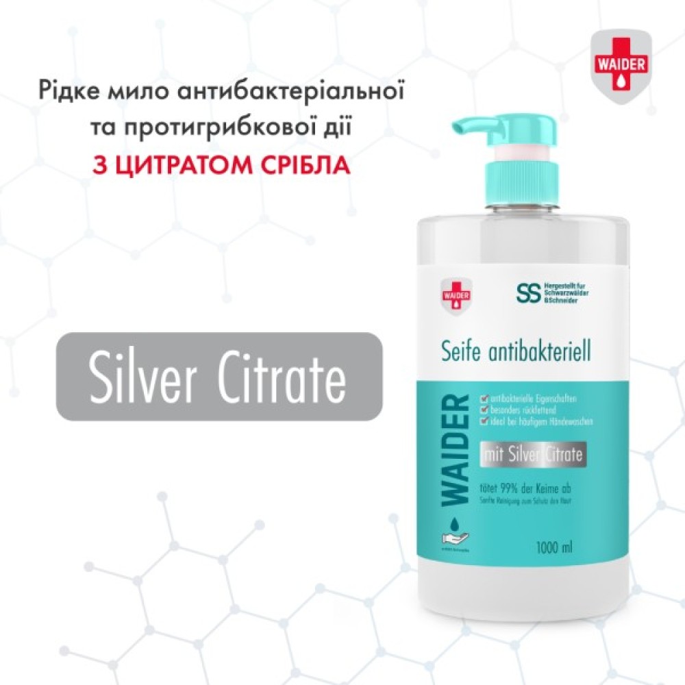 Мило антибактеріальної дії створено фахівцями бренда Waider на основі компонентів Piroctone Olamine і Silver Citrate. Завдяки ним засіб не лише забезпечує абсолютну чистоту, а й бореться з патогенними бактеріями, але водночас не зачіпає корисної мікрофлори шкіри. Завдяки зволожувальним компонентам повністю виключається ризик появи сухості, дискомфортної стягнутості та лущення. Вам і вашій родині забезпечена абсолютна чистота, приємне відчуття свіжості та надійний захист від шкідливих мікроорганізмів.