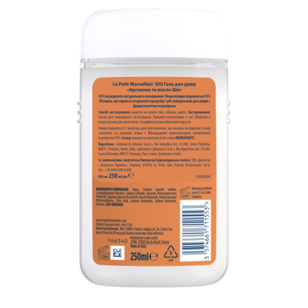 Гель для душу Le Petit Marseillais БІО Арганова олія та Ши 250 мл (3574661711553)