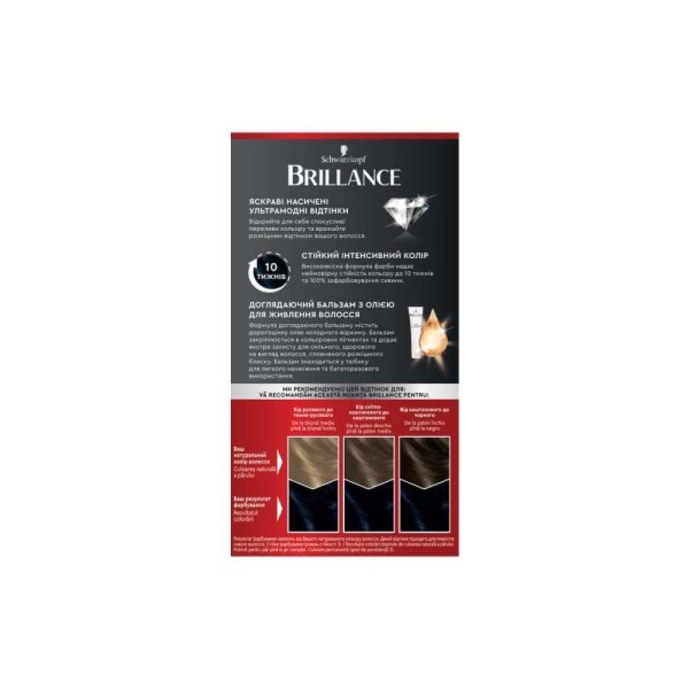 Обирайте фарбу Brillance для перетворення вашого образу і насолоджуйтеся довговічним кольором, який бездоганно виглядає в будь-якому освітленні.