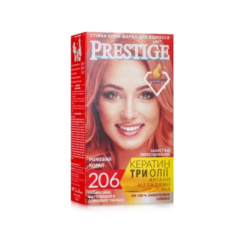 Фарба для волосся Vip's Prestige 206 - Рожевий корал, об'ємом 115 мл, дарує вам можливість кардинально змінити свій образ, надавши волоссю чарівного відтінку рожевого коралу. Розроблена у Болгарії, ця фарба підходить для всіх типів волосся і належить до класу мас-маркет, що робить її доступною й водночас якісною.