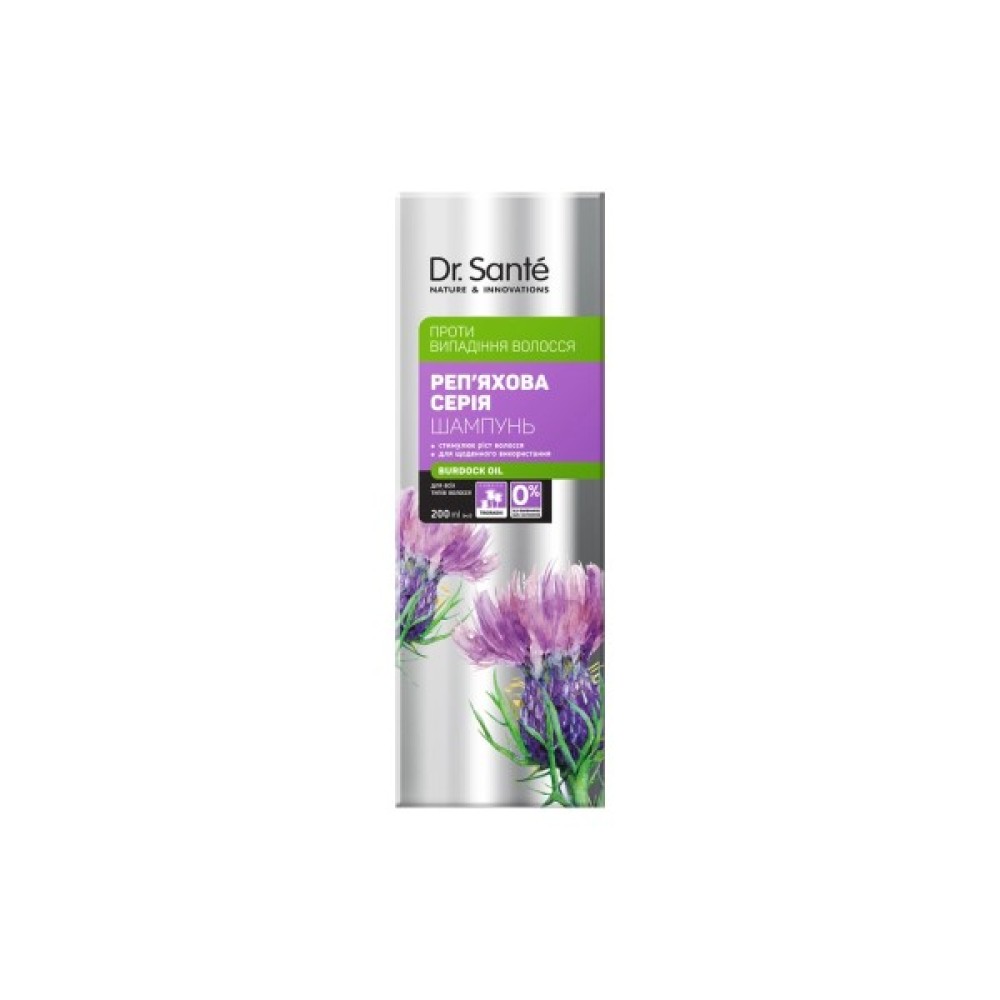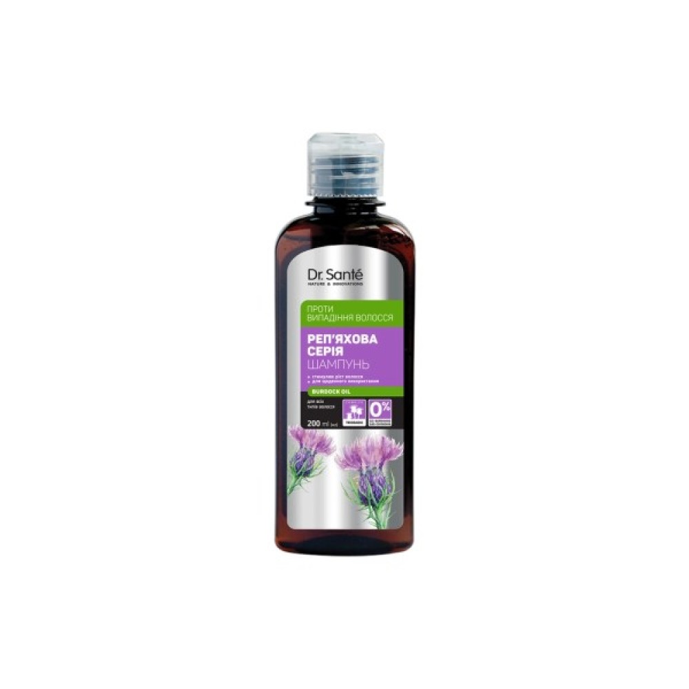 Шампунь Dr. Sante Реп'яхова Серія Проти випадіння волосся 200 мл (4823015945069) - ідеальне рішення для тих, хто шукає якісний засіб для боротьби з випадінням волосся. Розроблений українськими косметологами, цей продукт належить до мас-маркет косметики, що підтверджує його доступність та якість. Спеціальна формула підходить для всіх типів волосся, що робить шампунь універсальним вибором для чоловіків і жінок.