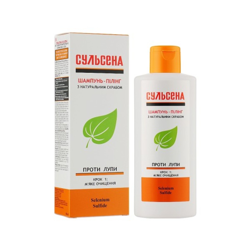 Шампунь Сульсена проти лупи з натуральним скрабом 150 мл (4823052203047) — ваш надійний союзник у боротьбі з лупою для всіх типів волосся. Створений для унісекс використання, цей аптечний продукт вироблений в Україні, поєднує в собі інноваційні рішення і турботу про природу. Формула шампуню базується на дисульфіді селену (SeS2), відомому своїми себорегулювальними властивостями, які допомагають ефективно усунути лупу та запобігають її повторній появі.