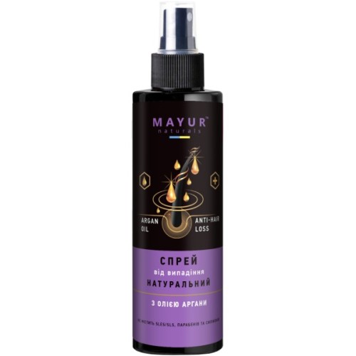 Особливості спрея натурального від випадіння волосся з арганією бренду Mayur: