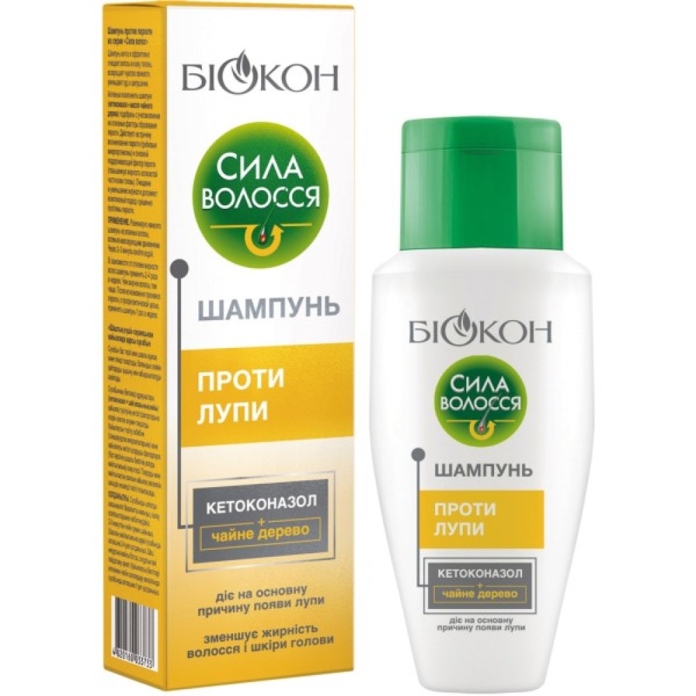 Шампунь Біокон Сила Волосся Проти лупи об'ємом 150 мл створений спеціально для жінок, які прагнуть насолоджуватися здоровим волоссям без прикрої лупи. Розроблений в Україні, він є частиною мас-маркет косметики, доступної і ефективної для всіх типів волосся.