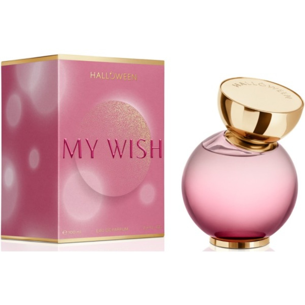 Halloween My Wish Eau De Parfum — фруктовий квітковий гурманський аромат для жінок, випущений у 2024 році. My Wish — це аромат таємних бажань та явної чарівності. Спочатку з'являються бажання, тоді мрії, а потім вони втілюються у реальність. Реальність, наповнену мріями та бажаннями, красою, спокусою та радістю буття, пропонує вишуканий рожевий флакон із золотистою кришкою.